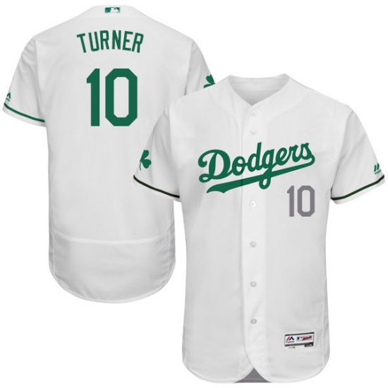 Home>MLB>Los Angeles Dodgers>Justin Turner>Men's Majestic Los Angeles Dodgers #10 Justin Turner White Celtic Flexbase Authentic Collection MLB Jersey