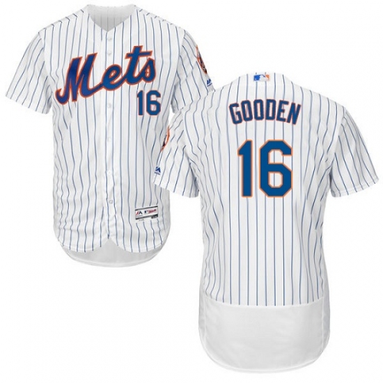 Men's Majestic New York Mets #16 Dwight Gooden White Home Flex Base Authentic Collection MLB Jersey