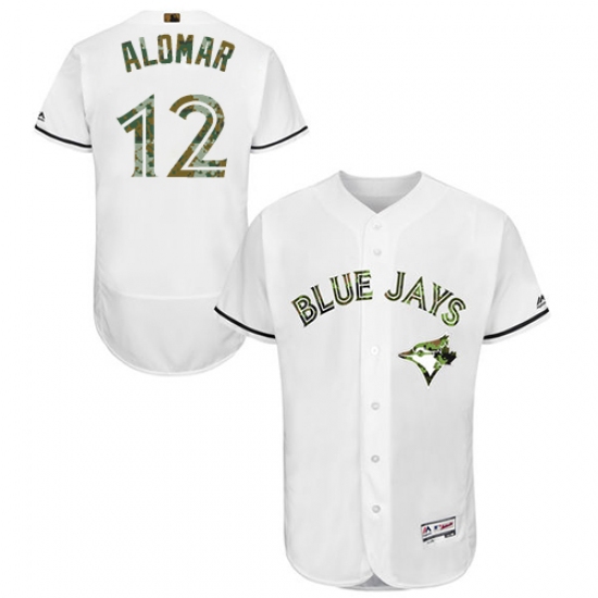 Home>MLB>Toronto Blue Jays>Roberto Alomar>Men's Majestic Toronto Blue Jays #12 Roberto Alomar Authentic White 2016 Memorial Day Fashion Flex Base MLB Jersey