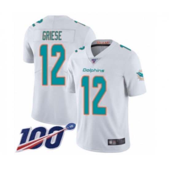 >Men's Miami Dolphins #12 Bob Griese White Vapor Untouchable Limited Player 100th Season Football Jersey