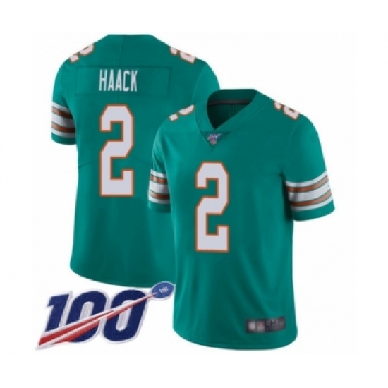 Men's Miami Dolphins #2 Matt Haack Aqua Green Alternate Vapor Untouchable Limited Player 100th Season Football Jersey