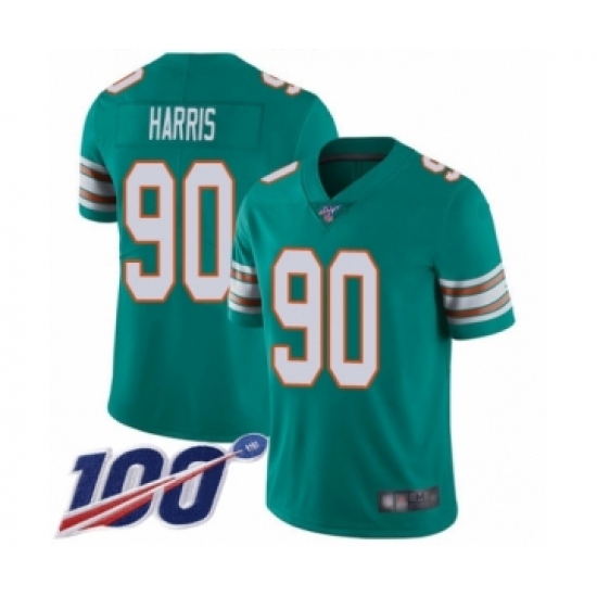 Men's Miami Dolphins #90 Charles Harris Aqua Green Alternate Vapor Untouchable Limited Player 100th Season Football Jersey