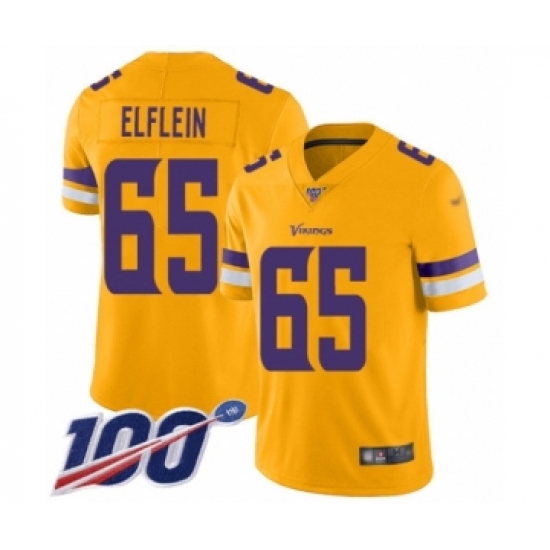 Men's Minnesota Vikings #65 Pat Elflein Limited Gold Inverted Legend 100th Season Football Jersey
