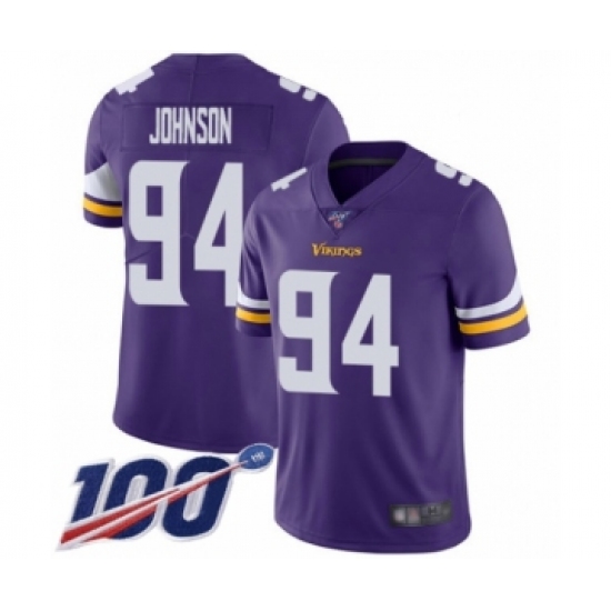 Men's Minnesota Vikings #94 Jaleel Johnson Purple Team Color Vapor Untouchable Limited Player 100th Season Football Jersey