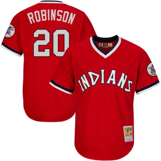 Men's Mitchell and Ness Cleveland Indians #20 Eddie Robinson Authentic Red Throwback MLB Jersey