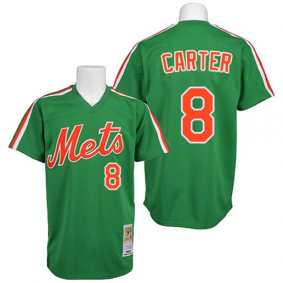 Men's Mitchell and Ness New York Mets #8 Gary Carter Replica Green 1985 Throwback MLB Jersey