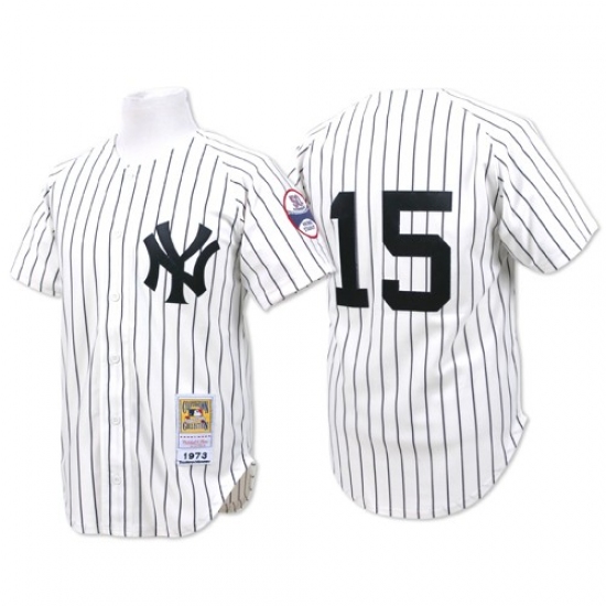 Men's Mitchell and Ness New York Yankees #15 Thurman Munson Replica White Throwback MLB Jersey