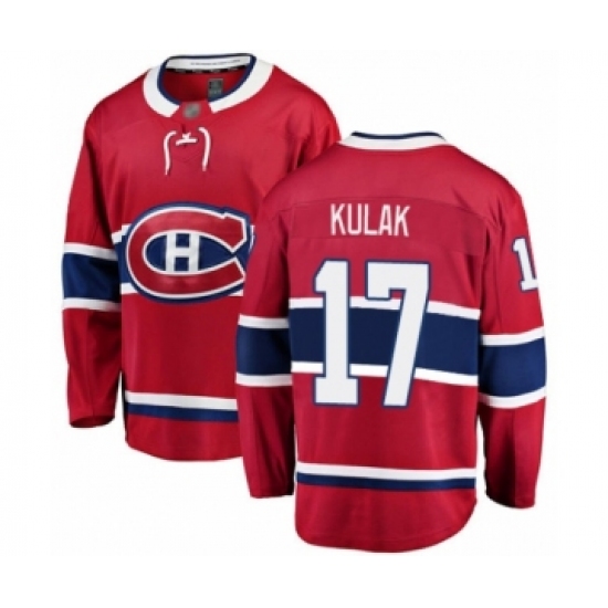 >Men's Montreal Canadiens #17 Brett Kulak Authentic Red Home Fanatics Branded Breakaway Hockey Jersey