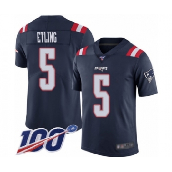 >Men's New England Patriots #5 Danny Etling Limited Navy Blue Rush Vapor Untouchable 100th Season Football Jersey