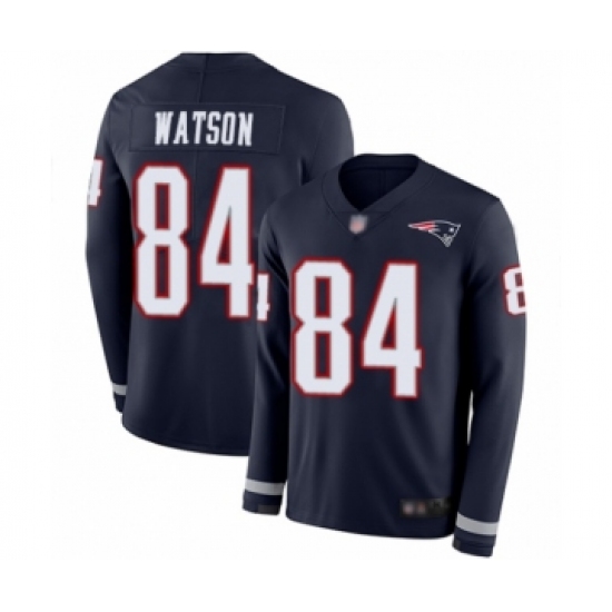 >Men's New England Patriots #84 Benjamin Watson Limited Navy Blue Therma Long Sleeve Football Jersey