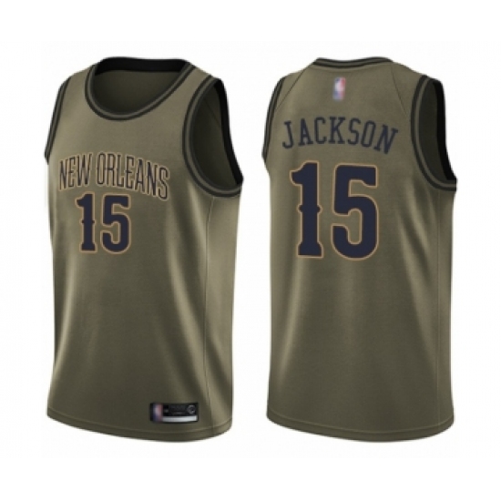 >Men's New Orleans Pelicans #15 Frank Jackson Swingman Green Salute to Service Basketball Jersey
