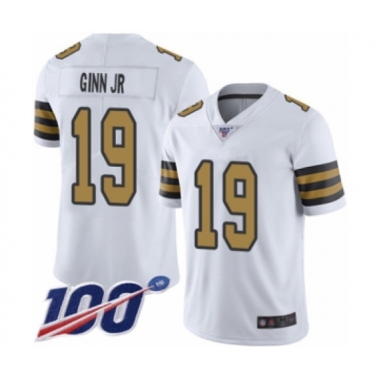 >Men's New Orleans Saints #19 Ted Ginn Jr Limited White Rush Vapor Untouchable 100th Season Football Jersey