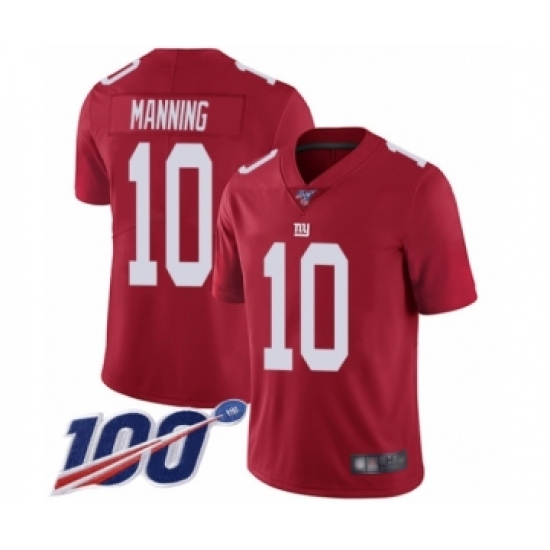 Men's New York Giants #10 Eli Manning Red Limited Red Inverted Legend 100th Season Football Jersey