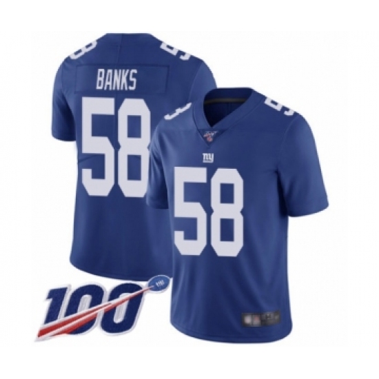 Men's New York Giants #58 Carl Banks Royal Blue Team Color Vapor Untouchable Limited Player 100th Season Football Jersey