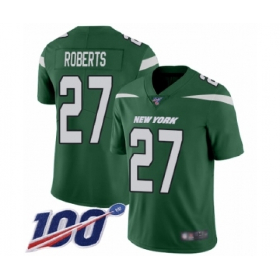 Men's New York Jets #27 Darryl Roberts Green Team Color Vapor Untouchable Limited Player 100th Season Football Jersey