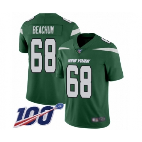 >Men's New York Jets #68 Kelvin Beachum Green Team Color Vapor Untouchable Limited Player 100th Season Football Jersey