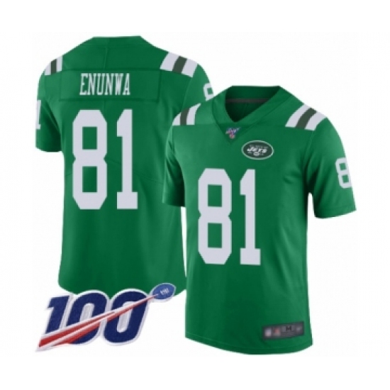 >Men's New York Jets #81 Quincy Enunwa Limited Green Rush Vapor Untouchable 100th Season Football Jersey