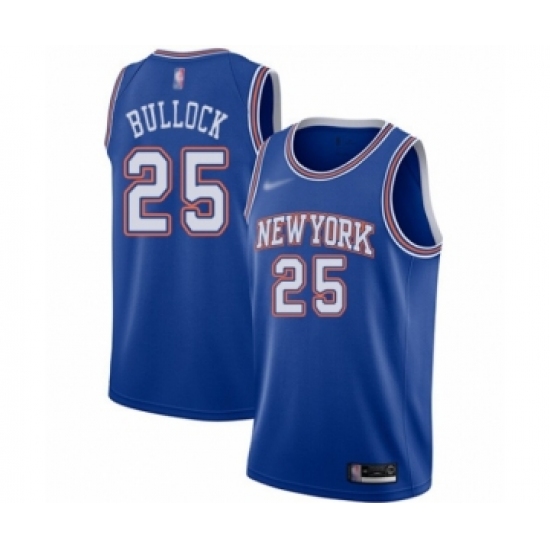 >Men's New York Knicks #25 Reggie Bullock Authentic Blue Basketball Jersey - Statement Edition