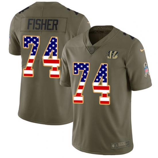Home>NFL>Cincinnati Bengals>Jake Fisher>Men's Nike Cincinnati Bengals #74 Jake Fisher Limited Olive/USA Flag 2017 Salute to Service NFL Jersey