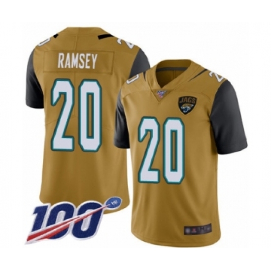 >Men's Nike Jacksonville Jaguars #20 Jalen Ramsey Limited Gold Rush Vapor Untouchable 100th Season NFL Jersey