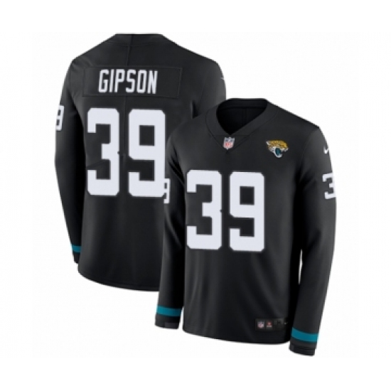 >Men's Nike Jacksonville Jaguars #39 Tashaun Gipson Limited Black Therma Long Sleeve NFL Jersey