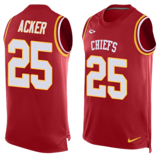 Home>NFL>Kansas City Chiefs>Kenneth Acker>Men's Nike Kansas City Chiefs #25 Kenneth Acker Limited Red Player Name & Number Tank Top NFL Jersey