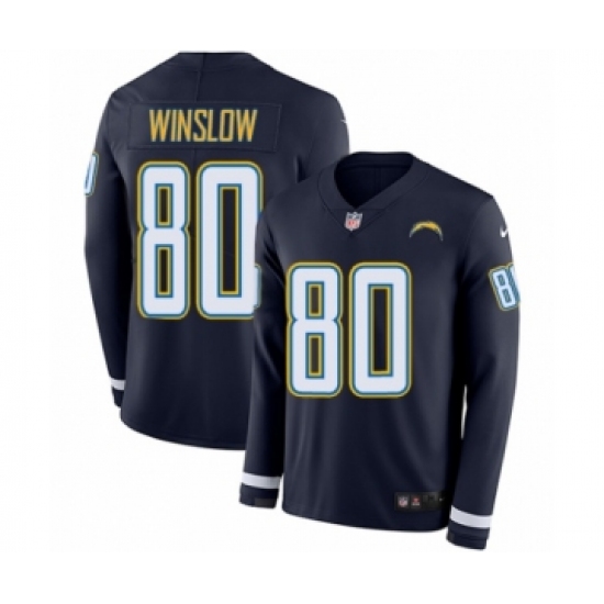 >Men's Nike Los Angeles Chargers #80 Kellen Winslow Limited Navy Blue Therma Long Sleeve NFL Jersey