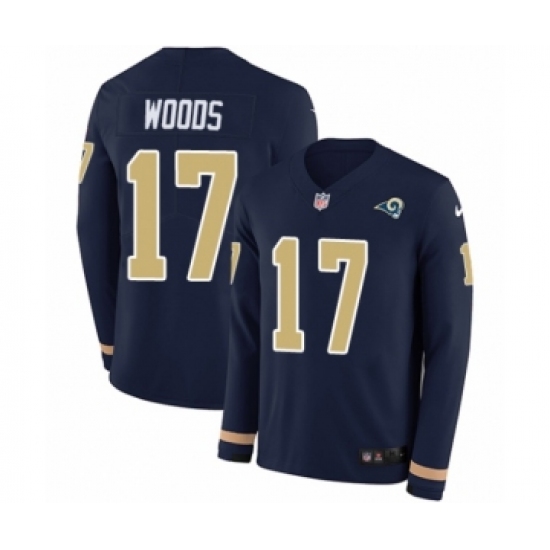 >Men's Nike Los Angeles Rams #17 Robert Woods Limited Navy Blue Therma Long Sleeve NFL Jersey