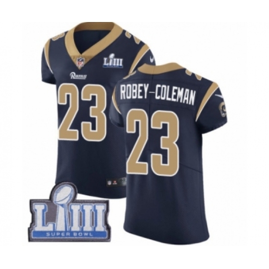 >Men's Nike Los Angeles Rams #23 Nickell Robey-Coleman Navy Blue Team Color Vapor Untouchable Elite Player Super Bowl LIII Bound NFL Jersey