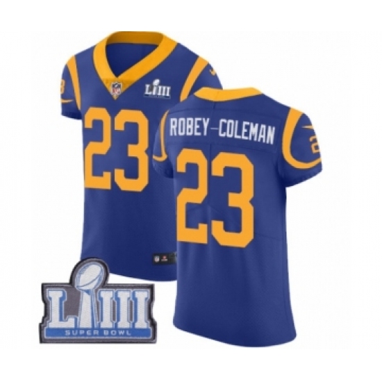 >Men's Nike Los Angeles Rams #23 Nickell Robey-Coleman Royal Blue Alternate Vapor Untouchable Elite Player Super Bowl LIII Bound NFL Jersey