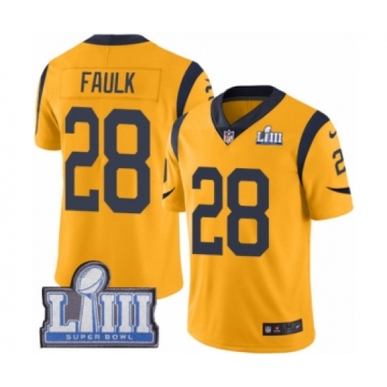 >Men's Nike Los Angeles Rams #28 Marshall Faulk Limited Gold Rush Vapor Untouchable Super Bowl LIII Bound NFL Jersey