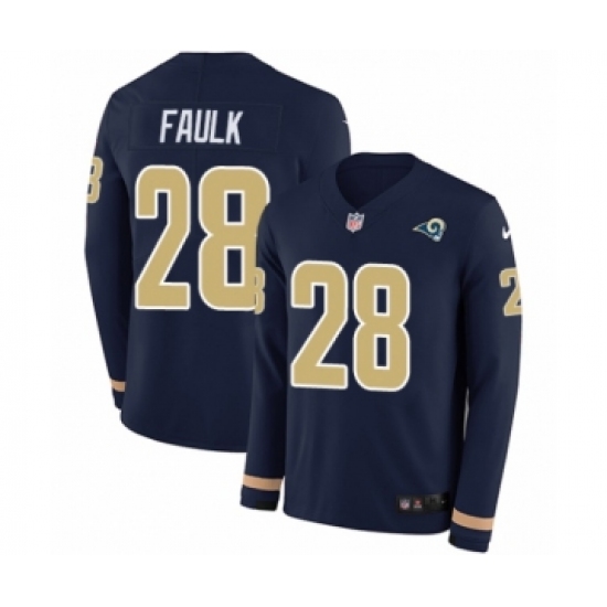 >Men's Nike Los Angeles Rams #28 Marshall Faulk Limited Navy Blue Therma Long Sleeve NFL Jersey