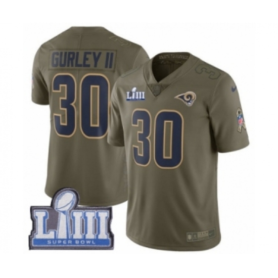 Men's Nike Los Angeles Rams #30 Todd Gurley Limited Olive 2017 Salute to Service Super Bowl LIII Bound NFL Jersey