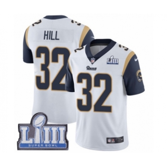 >Men's Nike Los Angeles Rams #32 Troy Hill White Vapor Untouchable Limited Player Super Bowl LIII Bound NFL Jersey