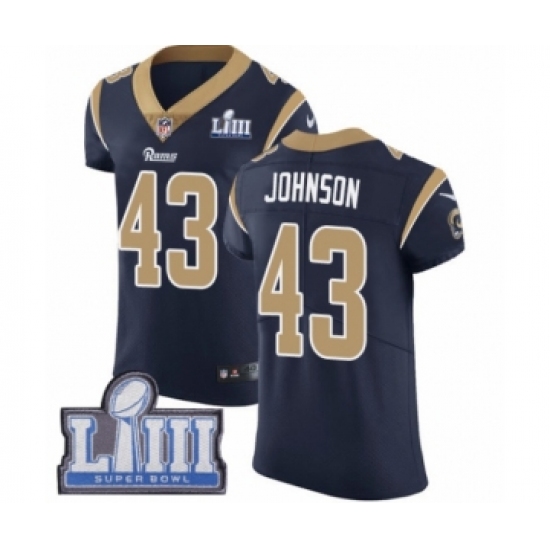 >Men's Nike Los Angeles Rams #43 John Johnson Navy Blue Team Color Vapor Untouchable Elite Player Super Bowl LIII Bound NFL Jersey