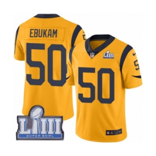 >Men's Nike Los Angeles Rams #50 Samson Ebukam Limited Gold Rush Vapor Untouchable Super Bowl LIII Bound NFL Jersey