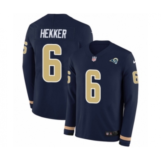 >Men's Nike Los Angeles Rams #6 Johnny Hekker Limited Navy Blue Therma Long Sleeve NFL Jersey