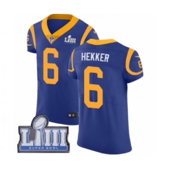 Men's Nike Los Angeles Rams #6 Johnny Hekker Royal Blue Alternate Vapor Untouchable Elite Player Super Bowl LIII Bound NFL Jersey