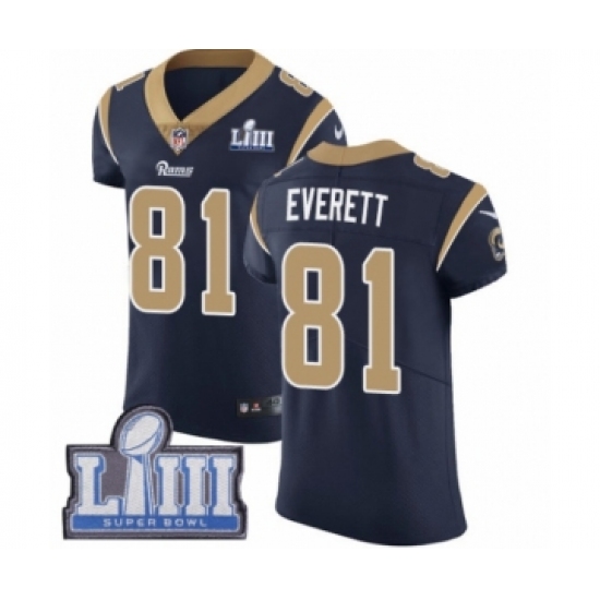 >Men's Nike Los Angeles Rams #81 Gerald Everett Navy Blue Team Color Vapor Untouchable Elite Player Super Bowl LIII Bound NFL Jersey