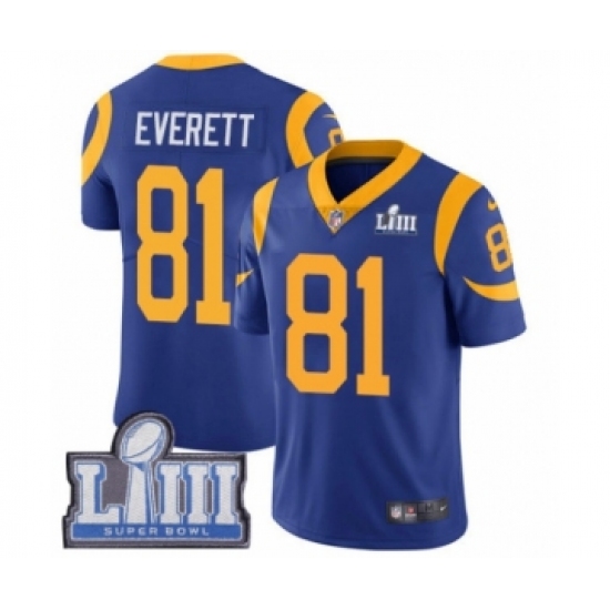 Men's Nike Los Angeles Rams #81 Gerald Everett Royal Blue Alternate Vapor Untouchable Limited Player Super Bowl LIII Bound NFL Jersey