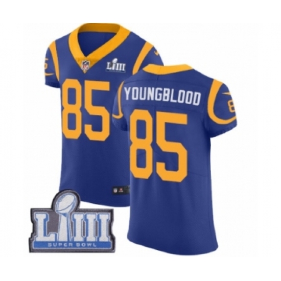 >Men's Nike Los Angeles Rams #85 Jack Youngblood Royal Blue Alternate Vapor Untouchable Elite Player Super Bowl LIII Bound NFL Jersey