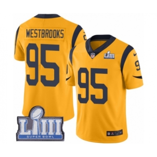 >Men's Nike Los Angeles Rams #95 Ethan Westbrooks Limited Gold Rush Vapor Untouchable Super Bowl LIII Bound NFL Jersey