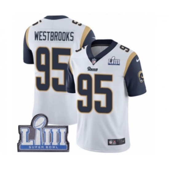 >Men's Nike Los Angeles Rams #95 Ethan Westbrooks White Vapor Untouchable Limited Player Super Bowl LIII Bound NFL Jersey