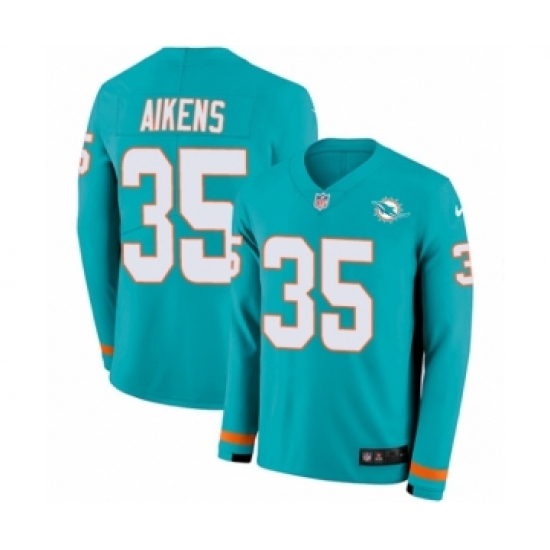 >Men's Nike Miami Dolphins #35 Walt Aikens Limited Aqua Therma Long Sleeve NFL Jersey