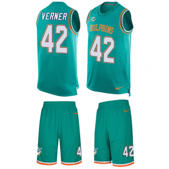 Home>NFL>Miami Dolphins>Alterraun Verner>Men's Nike Miami Dolphins #42 Alterraun Verner Limited Aqua Green Tank Top Suit NFL Jersey