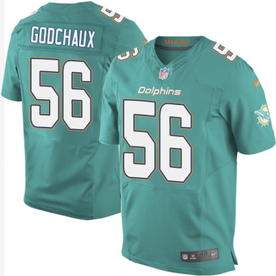 Home>NFL>Miami Dolphins>Davon Godchaux>Men's Nike Miami Dolphins #56 Davon Godchaux Elite Aqua Green Team Color NFL Jersey
