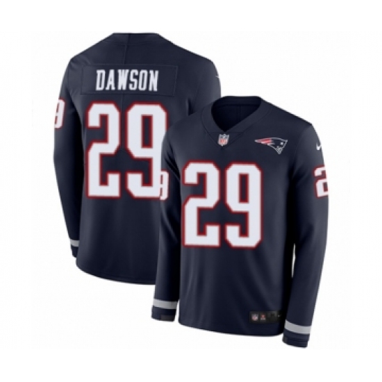 Men's Nike New England Patriots #29 Duke Dawson Limited Navy Blue Therma Long Sleeve NFL Jersey