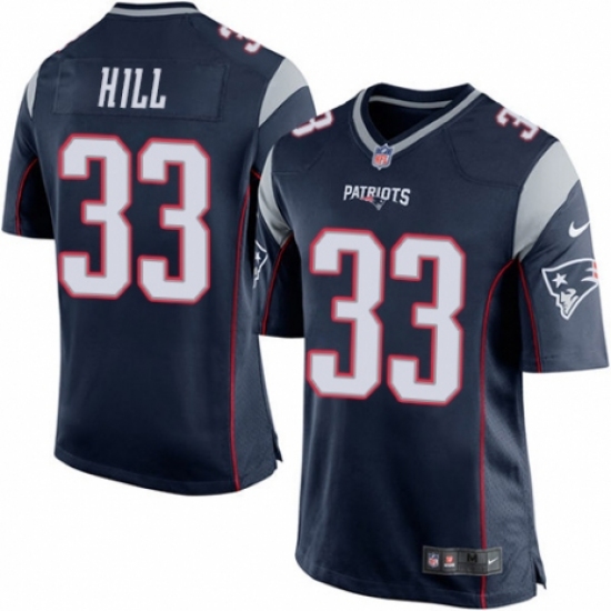 >Men's Nike New England Patriots #33 Jeremy Hill Game Navy Blue Team Color NFL Jersey