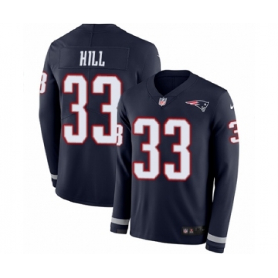 Men's Nike New England Patriots #33 Jeremy Hill Limited Navy Blue Therma Long Sleeve NFL Jersey