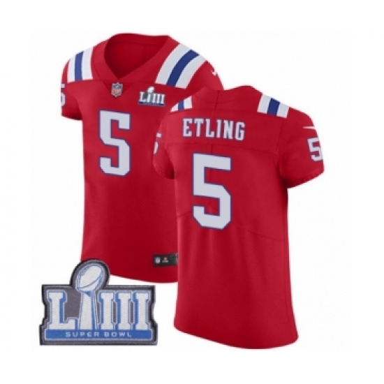 Men's Nike New England Patriots #5 Danny Etling Red Alternate Vapor Untouchable Elite Player Super Bowl LIII Bound NFL Jersey